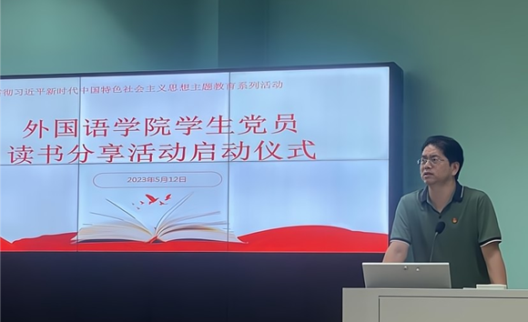 接下来,研究生党员况晶做了题为“学思想,读原著,做实践,悟真理”的读书心得分享为此次活动预热。况晶分享的是读《习近平谈治国理政》的心得体会,这本书全面系统回答了新时代中国发展的重大理论和现实问题,是国际社会了解当代中国的重要窗口、寻找中国问题答案的一把钥匙。同时,作为外语学子,况晶从双语文化的角度来领悟其中深刻内涵,她专门分享了《习近平谈治国理政》英译版本中“天下”等概念词和该书引用的古诗词在翻译过程中文化上的适应性选择。