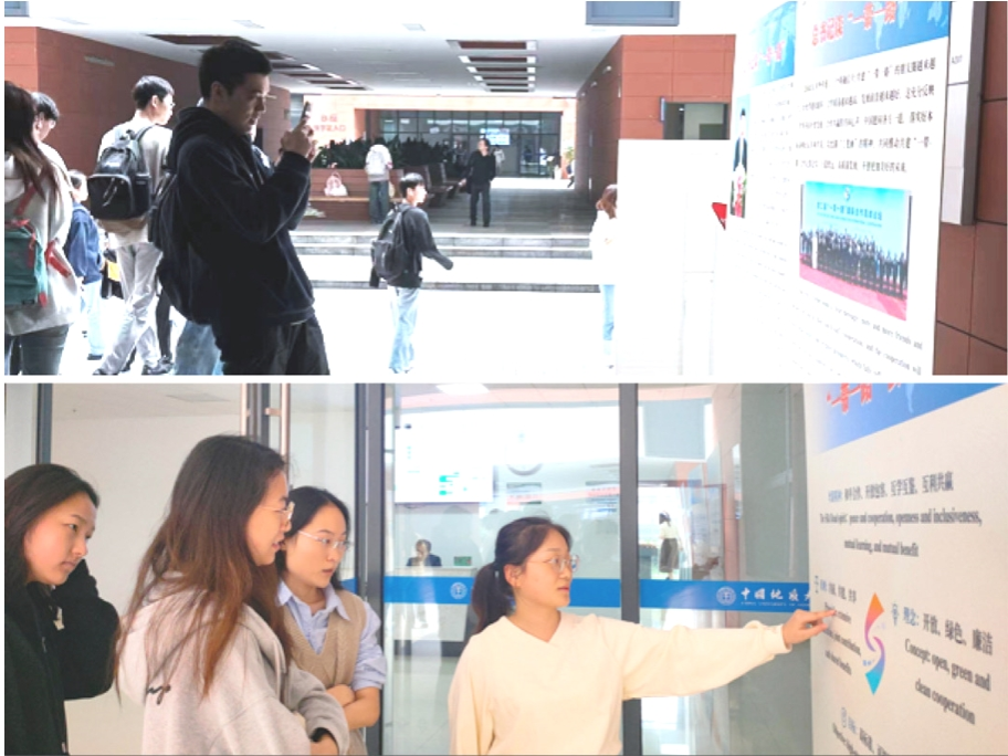 (通讯员 方裕鑫 李海涵)中国地质大学(武汉)东教楼A座教室入口,整齐排列着十个展板。在忙碌的课间,闲暇的课后,不少路过同学们驻足观看,饶有兴致。“‘一带一路’四个字虽然如雷贯耳,但其实真的了解不多,课间看了总书记谈‘一带一路’的内容,让我对中国提出这一倡议感到很自豪。”某学院陈同学对布展同学说。