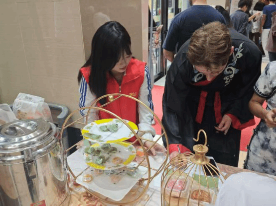 美食体验区人气旺盛。餐台上,各式月饼琳琅满目。志愿者介绍了月饼口味与样式演变的历史,也讲解了月饼“团圆”寓意的历史渊源。