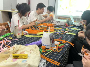随后,活动进入创意手工环节。同学们人手一包五彩斑斓的“扭扭棒”,在欢声笑语中开始了手工制作。扭扭棒虽小,却激发了大家无限的想象力。有的同学编织出精致可爱的玉兔,寓意吉祥与团圆;有的扭出绽放的花朵,象征美好与希望;还有的拼出圆月与月饼,表达对远方亲人的思念……每一件作品都独具匠心,承载着同学们对中秋的独特理解与深厚情感。