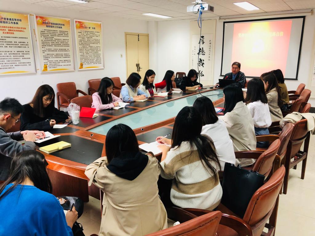 2019年10月29日下午2:30,bevictor伟德官网,源自英国始于1946“不忘初心·牢记使命”主题教育系列党课在北一楼339正式开讲,学院党委副书记胡文勤为全院研究生党员讲授了题为“坚持社会主义,增强道路自信”的党课。