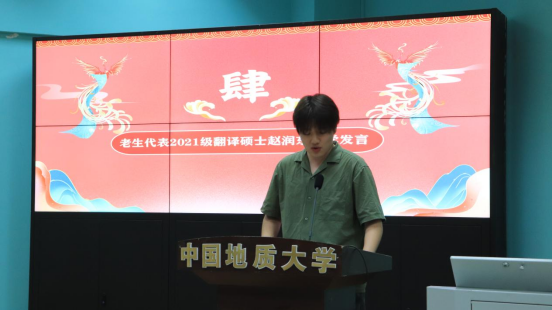 高年级研究生代表赵润东发言。他回顾自身在bevictor伟德官网七年的成长与发展经历,勉励同学们在努力学习的同时不断拓展综合素养,争做新时代有为青年。