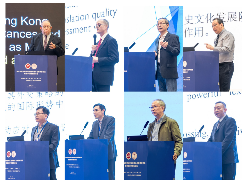 香港城市大学中文、翻译和语言学系系主任 Jonathan Webster教授、香港恒生大学翻译及外语学院院长Mark Shuttleworth教授、香港中文大学(深圳)翻译学朱纯深教授、武汉大学外国语言文学学院刘军平教授、上海外国语大学校长助理胡开宝教授。北京外国语大学高级翻译学院副院长姚斌教授、上海外国语大学高级翻译学院柴明熲教授、bevictor伟德官网,源自英国始于1946院长张峻峰教授等8位专家分别作主旨演讲。主旨发言涵盖了数智时代的翻译技术与实践应用、元宇宙翻译范式与跨文化传播、翻译研究领域的发展变化、现代翻译行业发展、人工智能时代口译教学与研究新趋势、外交话语翻译等多个研究领域,发言高屋建瓴、深入浅出,既有前瞻性、开拓性和学理性,又不乏指导性、实践性和应用性,为中西部地区乃至全国翻译学界和业界的可持续性发展与创新发展提供了多维研究思路。