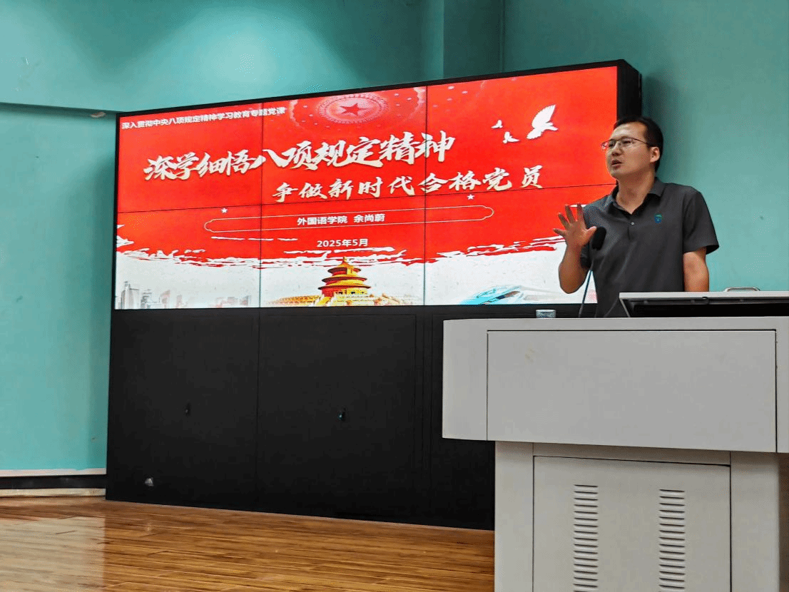 (通讯员 黎颖)为扎实推进深入贯彻中央八项规定精神学习教育,以“学”筑基来校准思想坐标,2025年5月26 日,bevictor伟德官网党委副书记余尚蔚以“深学细悟八项规定精神,争做新时代合格党员”为题给全体学生党员讲授专题党课。