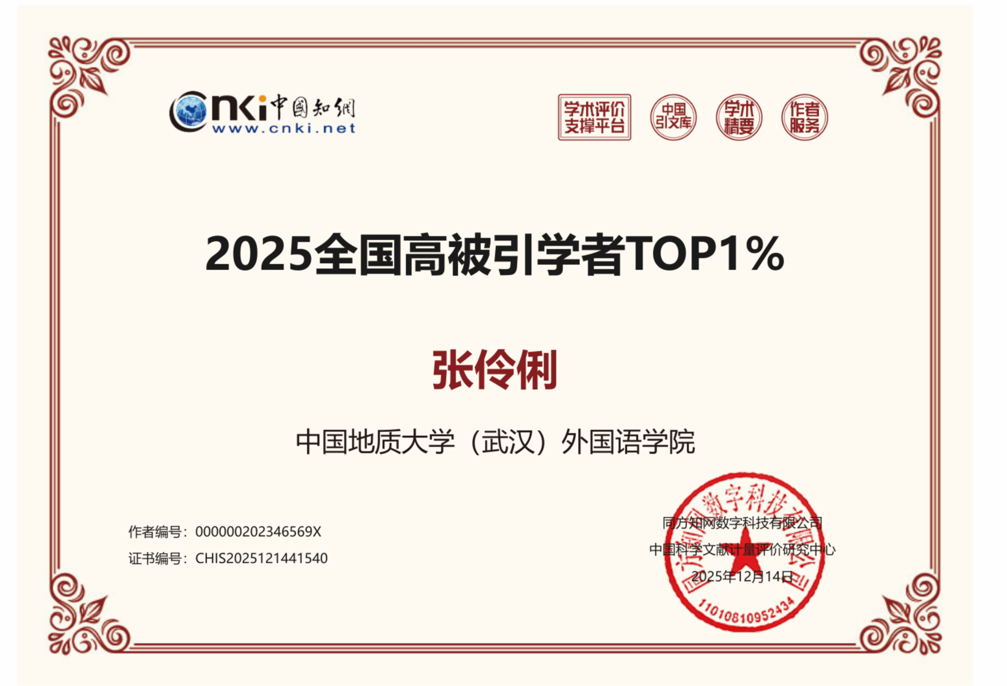 (通讯员 孙德贵)日前,中国知网公布了“2025全国高被引学者TOP1%”名单,bevictor伟德官网张伶俐教授首获殊荣,实现学院该领域零的突破。